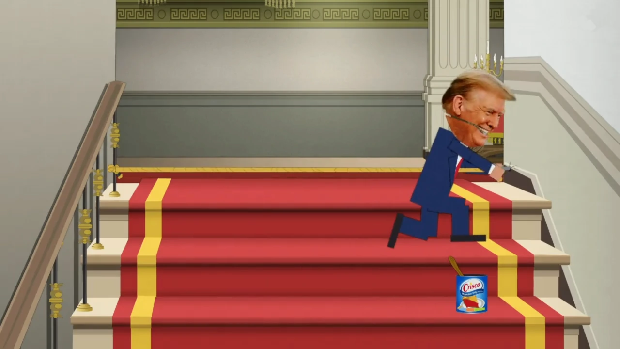 Тем временем в Вашингтоне творится нечто ещё более абсурдное. Трамп пытается избавиться от ребёнка, которого должен родить Сатана. Да, звучит безумно — и это ещё цветочки. Любая попытка сорвать это адское отцовство оборачивается катастрофой — но не для Трампа, а для Брэндэна Карра, главу Федеральной комиссии связи. То Карр случайно выпивает суп с экстренной контрацепцией, то попадает в ловушку с токсоплазмозом. Всякий раз он страдает, пока Трамп выкручивается.