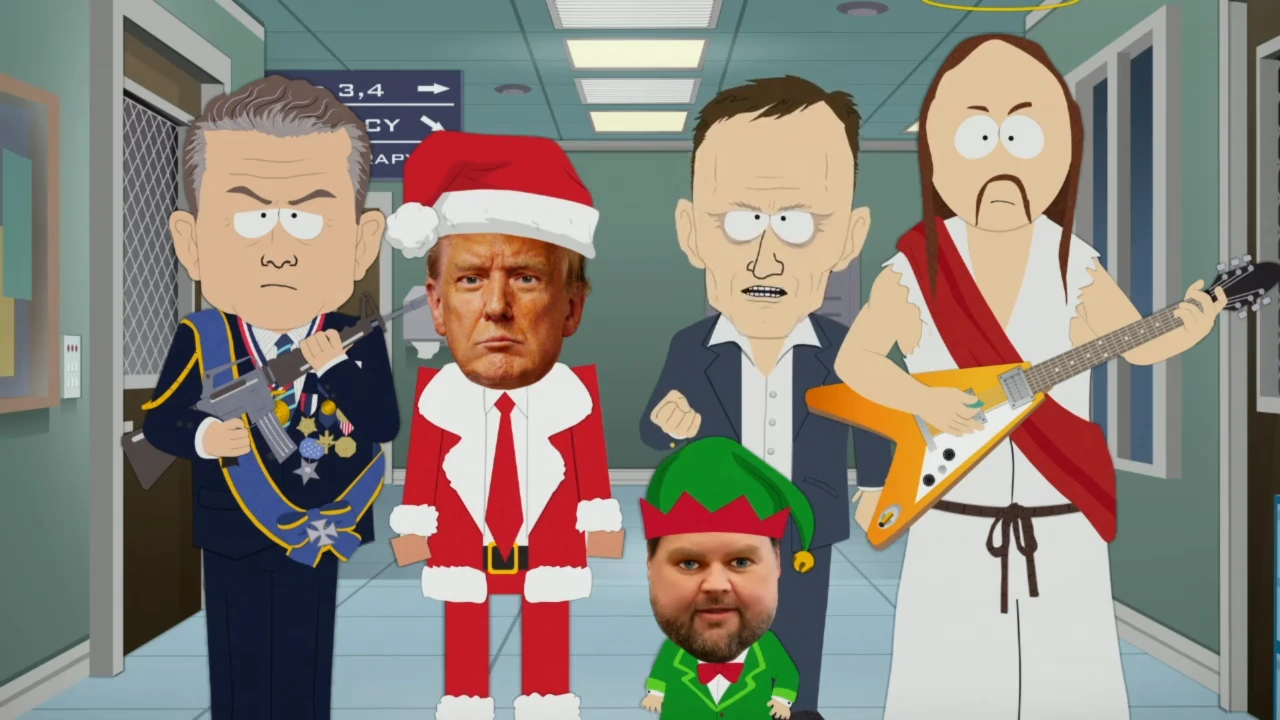 Тем временем Трамп и его вечно рядом вице-президент Дж. Д. Вэнс наряжаются в рождественские костюмы и катят в тюрьму Колорадо. Их цель — освободить Питера Тиля, миллиардера со связями, который, по их мнению, может разобраться с «младенческой проблемой».